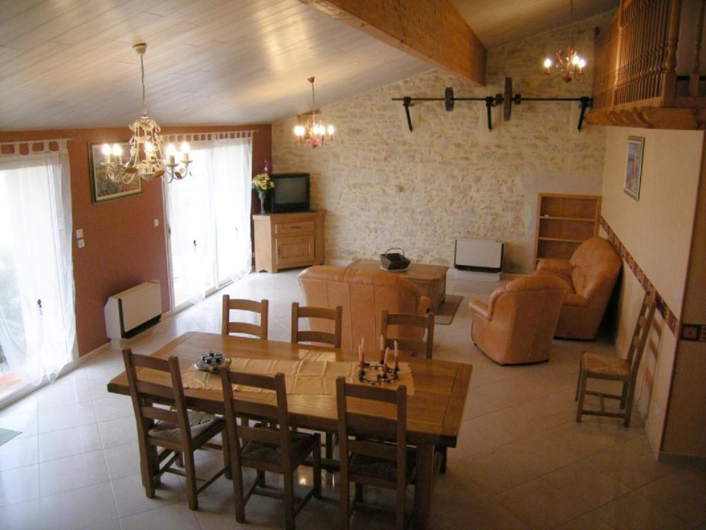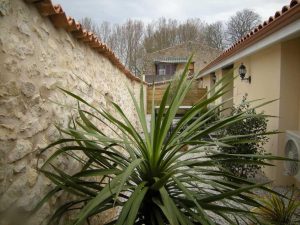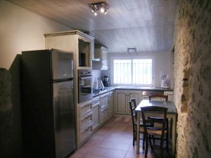 Aménagé dans l’ancien chai de la maison début XXème, mitoyen à un autre gîte, situé dans un hameau près de la RD 252. Séjournez dans un cadre chaleureux et convivial. Un patio, paysagé avec des plantes méditerranéennes vous offre un lieu de détente privilégié. Un grand terrain à proximité vous propose un espace idéal de jeux pour les enfants, molky, boulodrome, balançoire, table de ping-pong. Dans un style rustique, avec pierres apparentes et poutres, vous disposerez d’une grande pièce à vivre avec salle à manger et salon, cuisine aménagée, 1 chambre (1 lit 140), salle d’eau, wc. Mezzanine avec canapé clic-clac. A l’étage, 2 chambres (2 lits 90, 1 lit 140), pièce de jeux. Climatisation réversible dans les pièces de vie, radiateurs électriques dans les chambres. Possibilité de location de draps, linge de toilette, ménage fin de séjour. Pour votre confort, le linge de cuisine est fourni. Poste RADIO/CD/DISQUE. Spa en supplément à disposition sur réservation auprès des propriétaires (forfait une heure pour 5 personnes 50€).